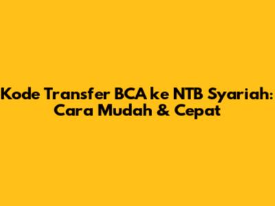 Kode Transfer BCA Ke NTB Syariah: Cara Mudah & Cepat